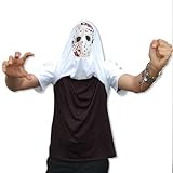 TS Horror-Maske Flipshirt Grösse L Erschrecken und amüsieren Sie Ihre Freunde mit diesem genialen und coolen Serienmörder Flipshirt. Auf den ersten Blick wirkt es wie ein gewöhnliches weißes T-Shirt, doch zieht man das Flipshirt über den Kopf, erscheint auf der Innenseite die aus -Freitag der 13.- bekannte Kult-Maske des Serienmörders Jason.