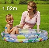 1 Stück Planschbecken / Schwimmbad / Swimmingpool (ohne Deko).inklusive Reparaturflicken / Fassungsvermögen: 81 Liter Wasser (75 % gefüllt).Material: Vinyl / Maße ca.: 1,02 m im Durchmesser x 20,0 cm hoch.Achtung: nicht für Kinder unter 3 Jahren geeignet / Lassen Sie Ihre Kinder niemals unbeobachtet allein im Wasser.mit Sicherheitsventilen / robustes, vorgetestetes Material / 2 gleichgroße Ringe. Weitere tolle Spielsachen finden Sie im Shop.