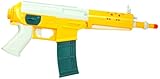 Das Gewehr ist aus robustem Kunststoff gefertigt und ist batteriebetrieben. Der eingebaute Motor hat genug Power, um pro Sekunde 4 Schuss Wasser durch den Lauf zu jagen und bis zu 6 Meter weit zu schießen. So macht doch jede Wasserschlacht Spaß!! Dein armer Gegner.... Zum Betrieb werden 4 AA Batterien benötigt. Das Magazin fasst ca. 180ml und lässt sich schnell entfernen und nachfüllen. Die Farbe der beweglichen Innenteile ist entweder blau oder orange, die Lieferung erfolgt nach zufälliger Sortierung. Batterien sind nicht im Lieferumfang enthalten.
